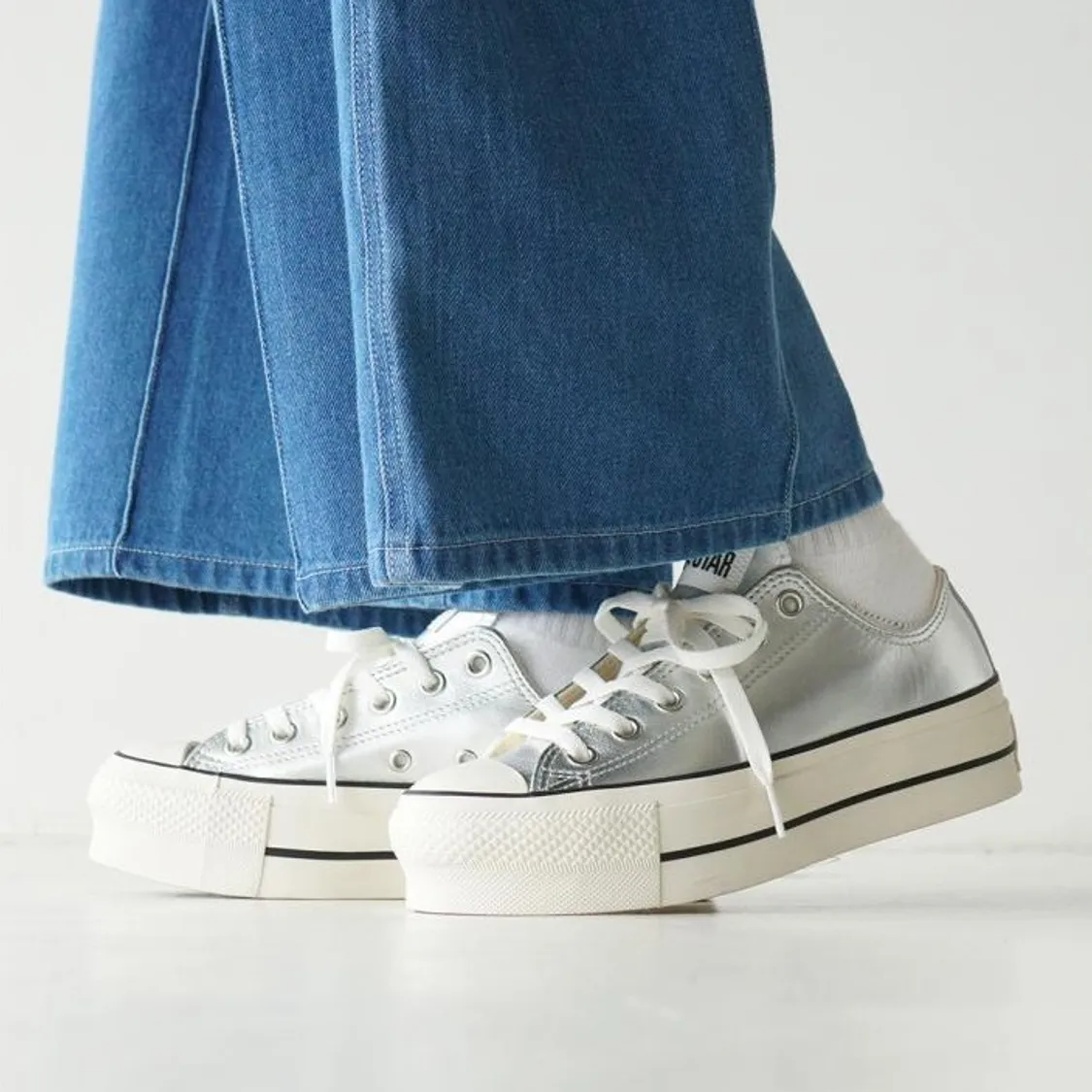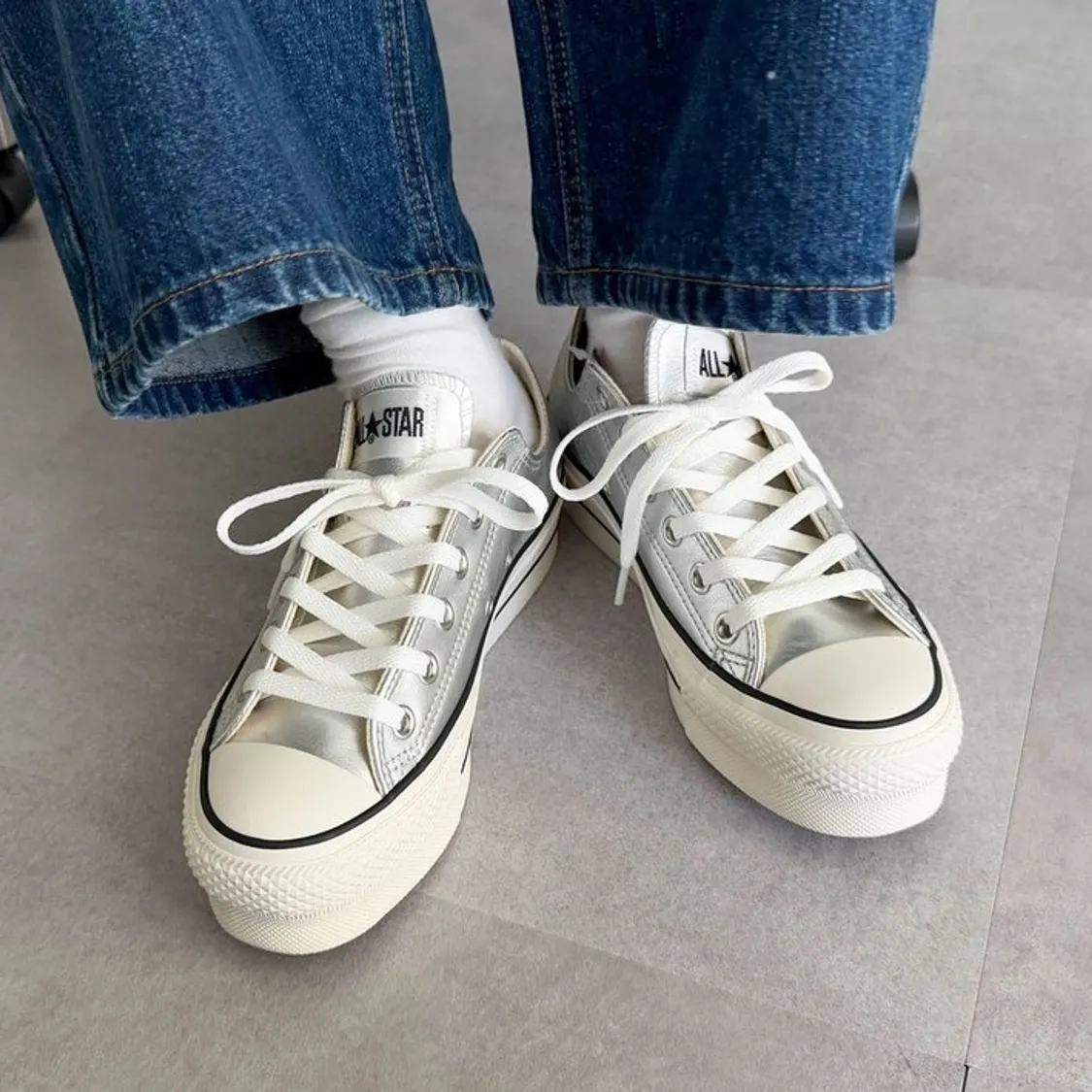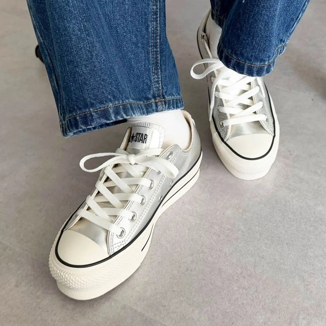 鞋面採用優雅的銀色皮革製成