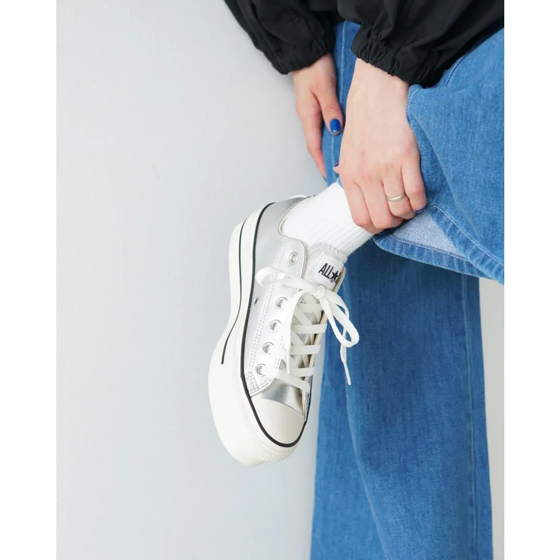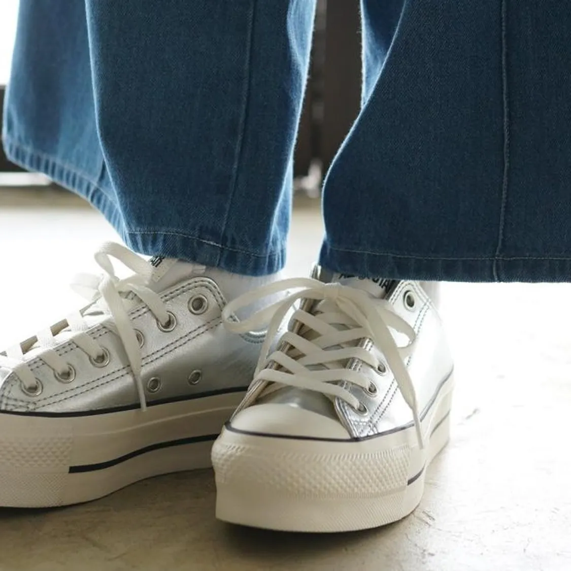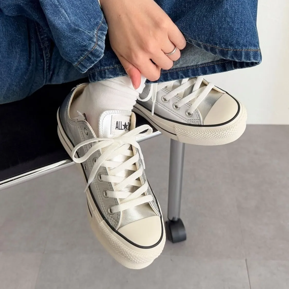 鞋面採用優雅的銀色皮革製成