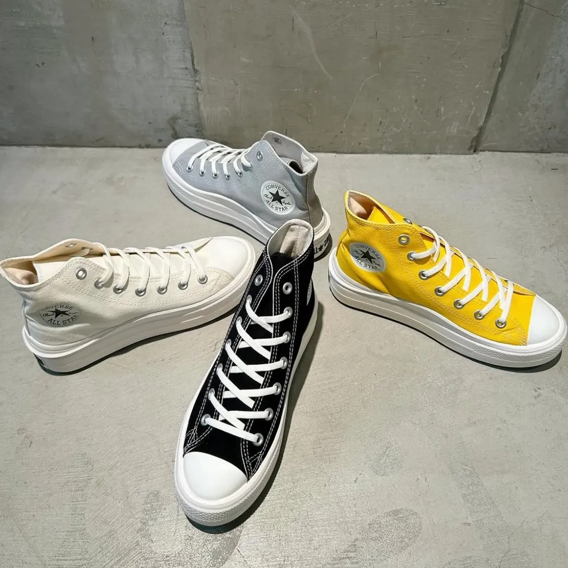 ALL STAR LIGHT PLTS Ⅱ HI 輕量設計 穿著無負擔鞋墊採用聚氨酯杯鞋墊,具有出色的透氣性和緩衝性能側邊波浪的外型設計增添了更多的可愛感版型正常此款增高約4cm(參考尺寸 24.5cm的鞋款)