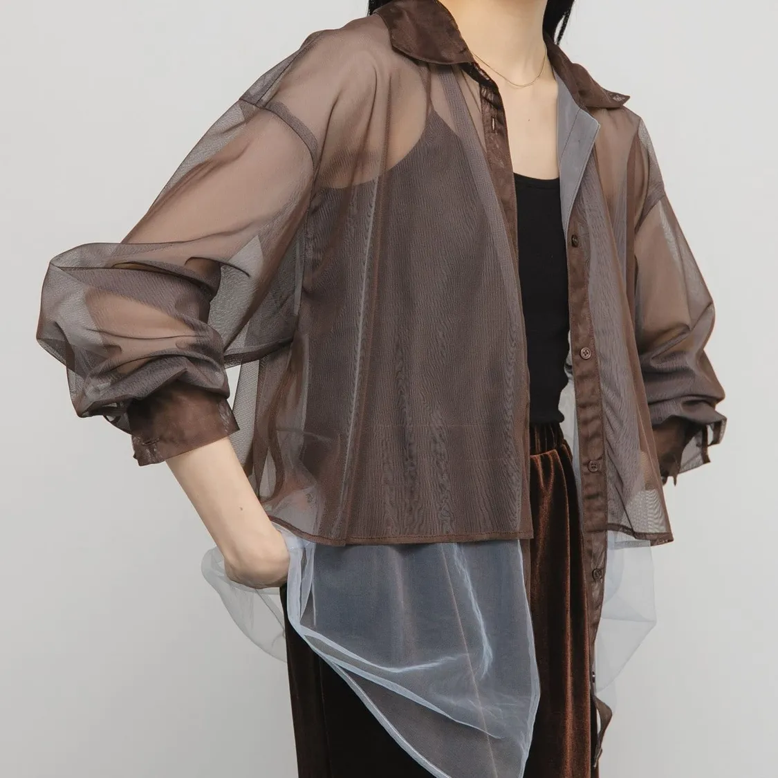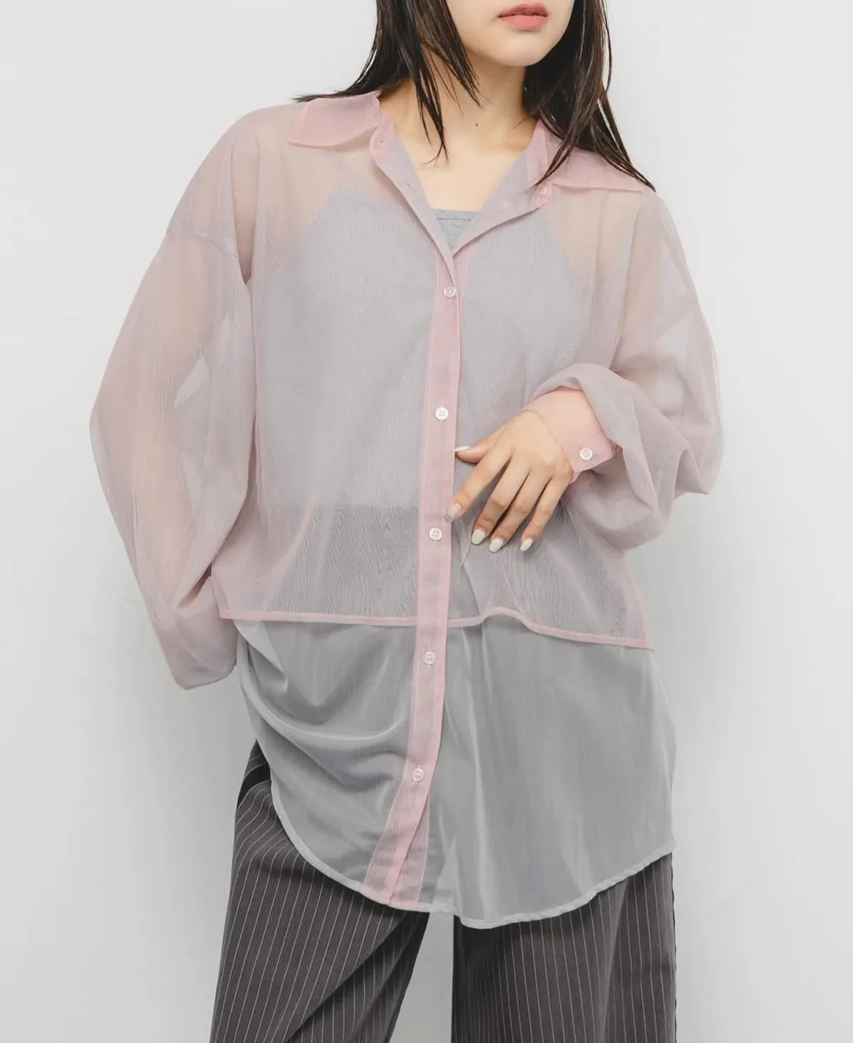KBF 假兩件式 透明感襯衫