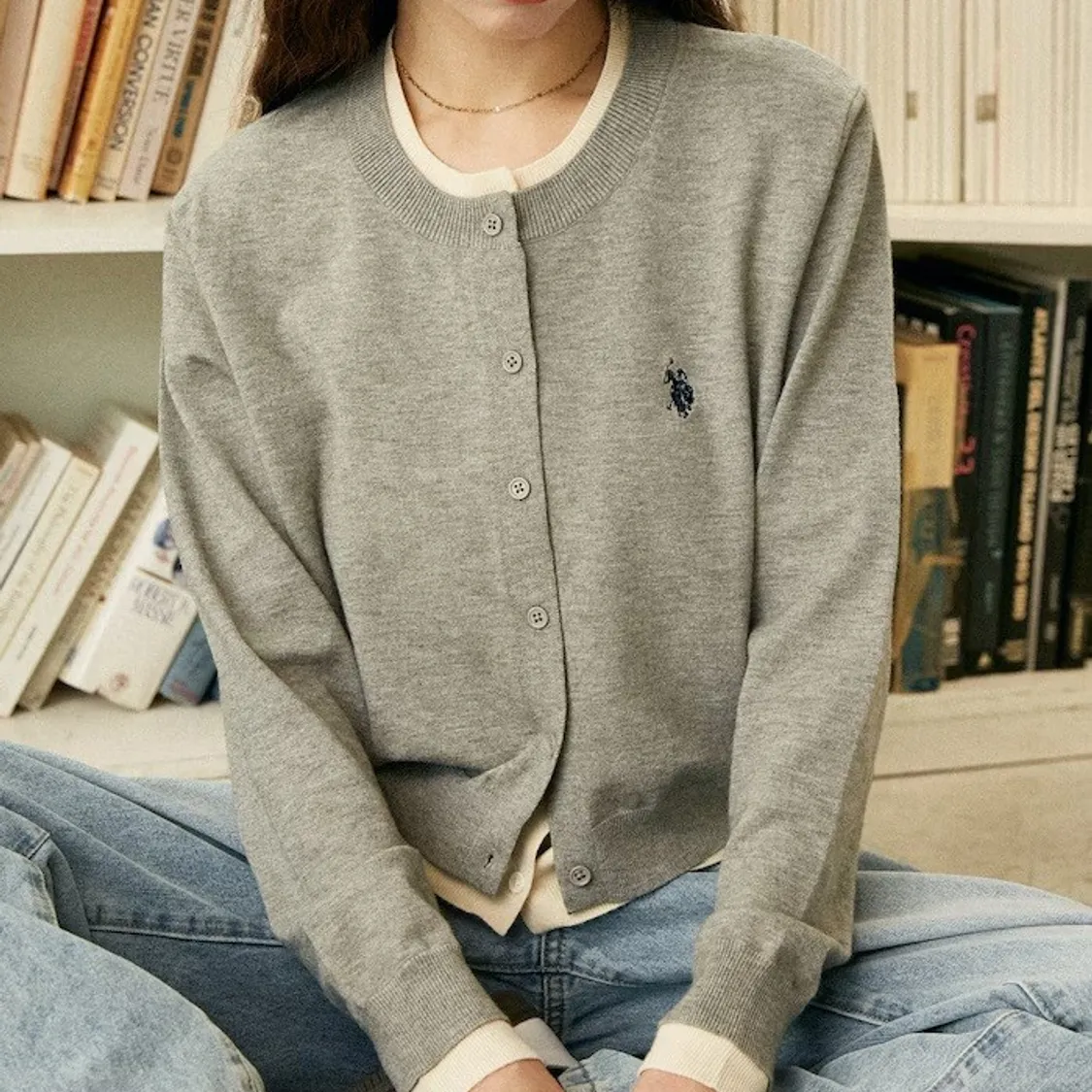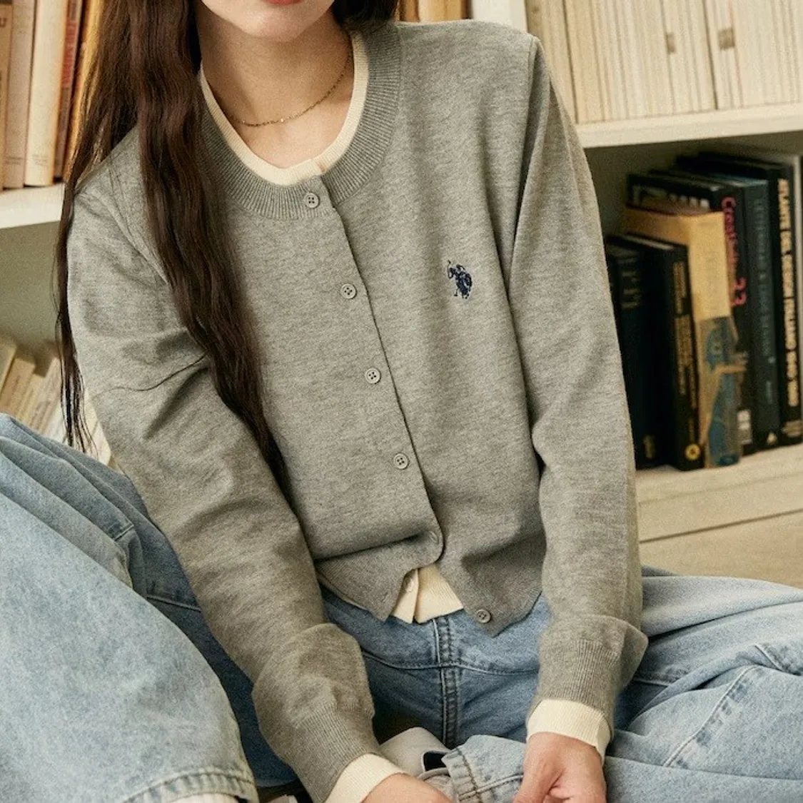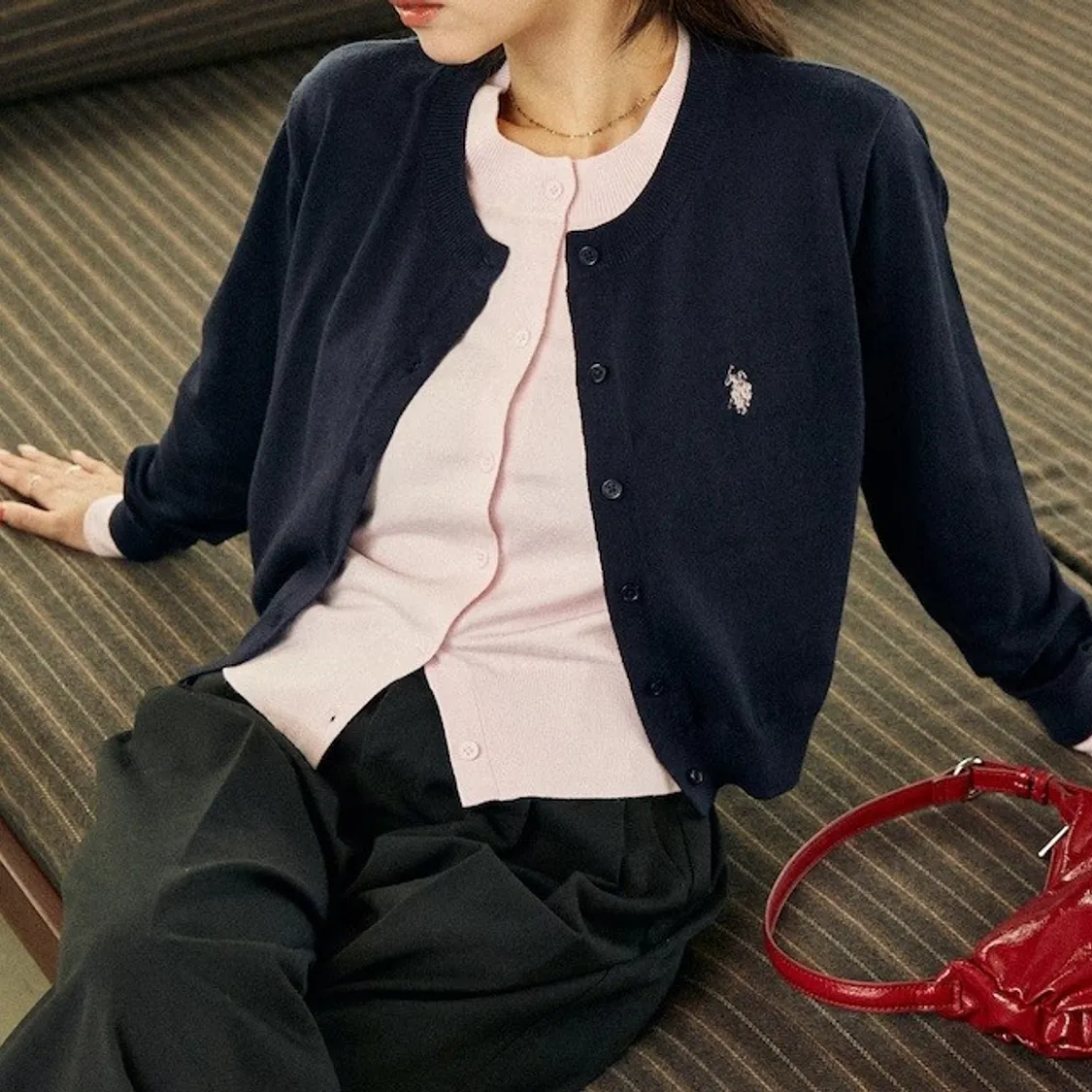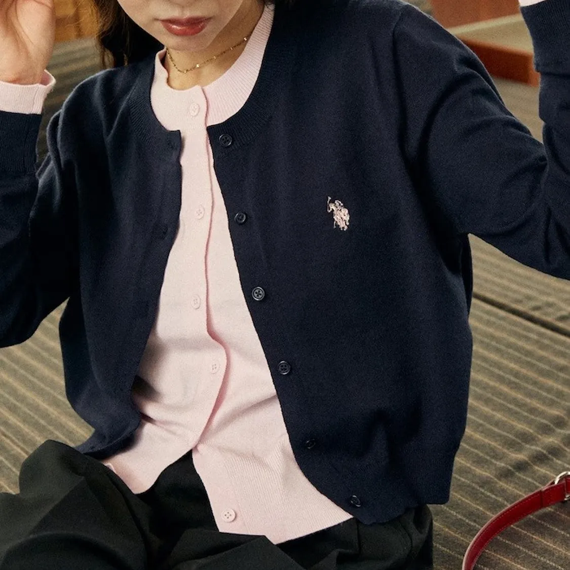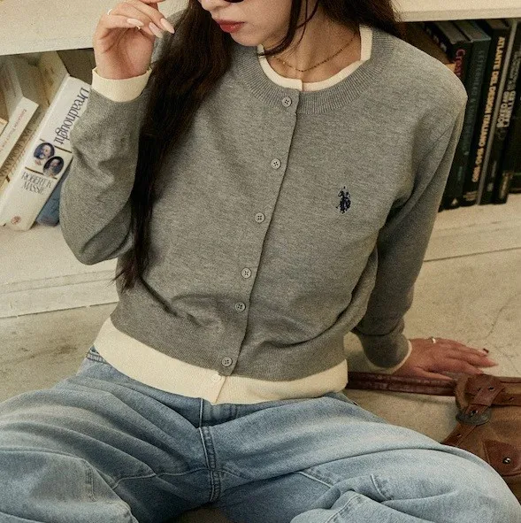 U.S. POLO ASSN. 配色假兩件式針織外套
