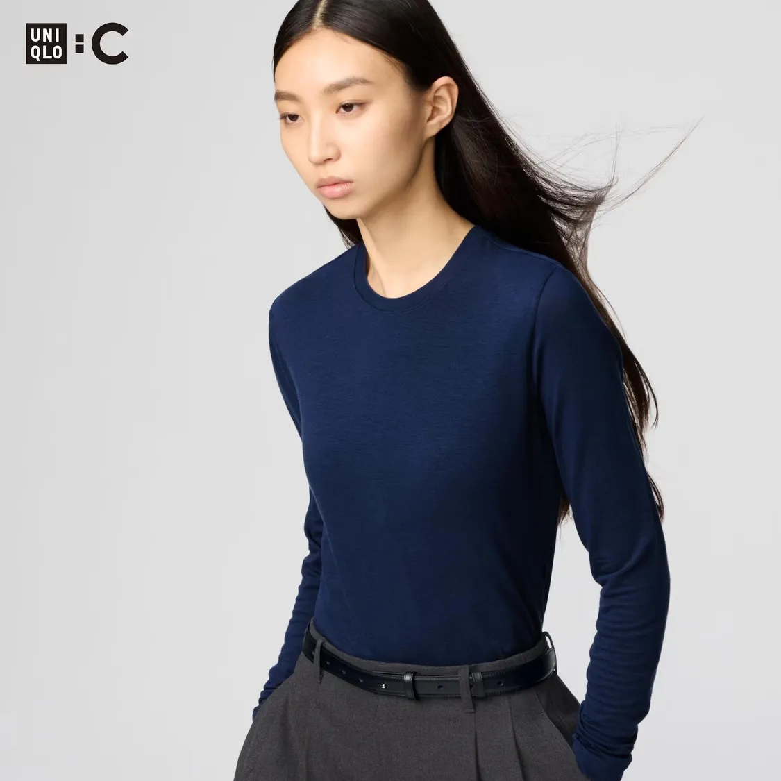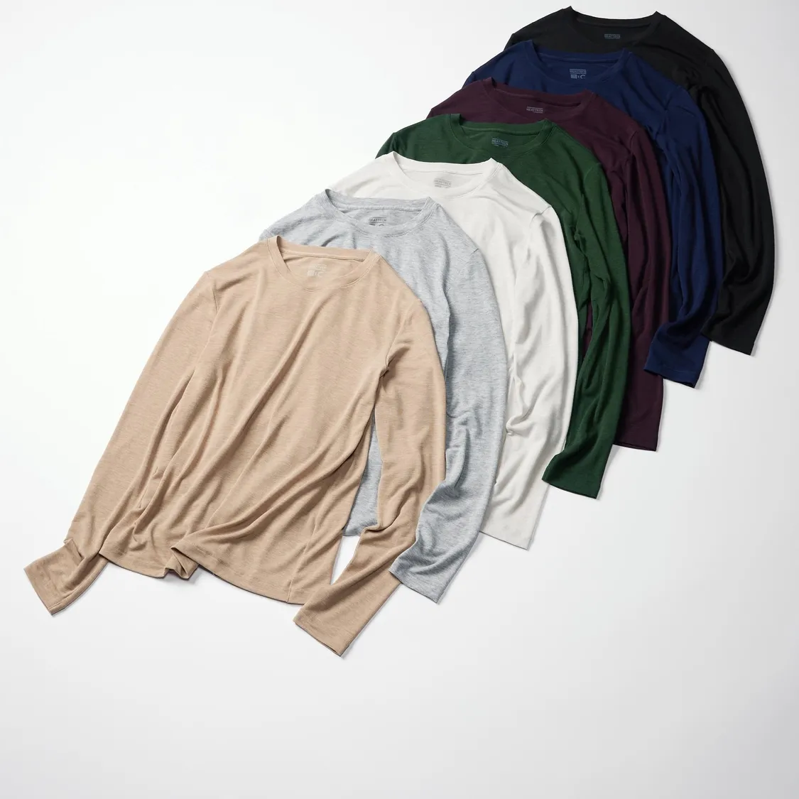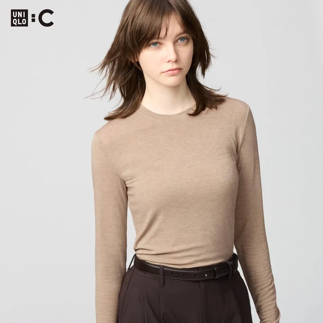 uniqlo HEATTECH 極暖 喀什米爾混紡圓領T恤(長袖)