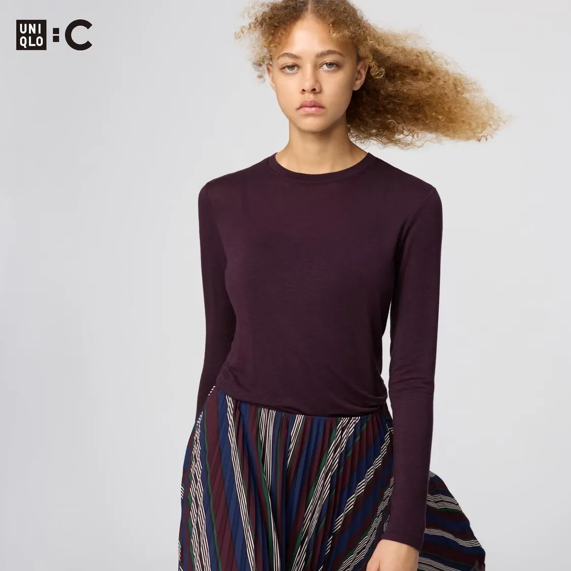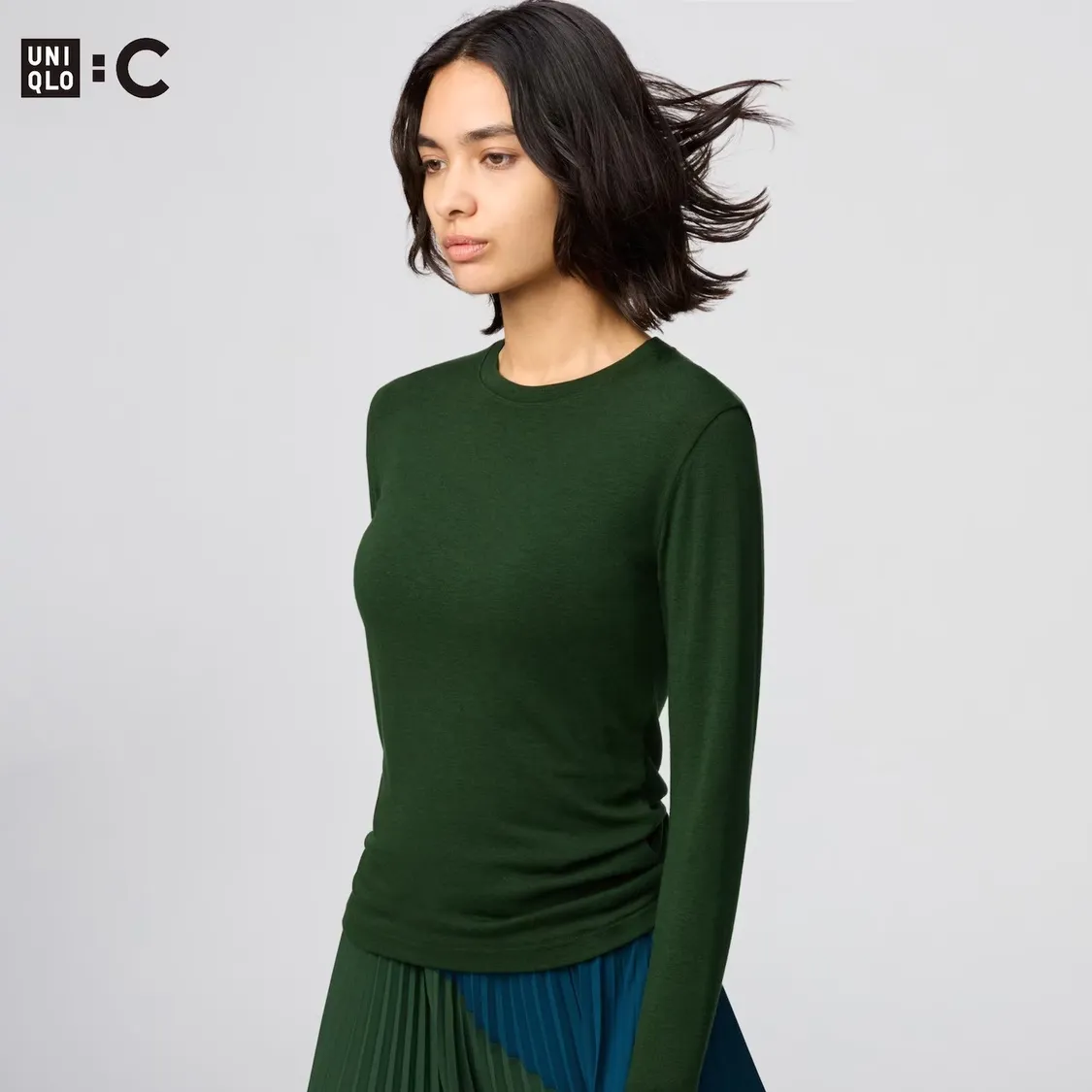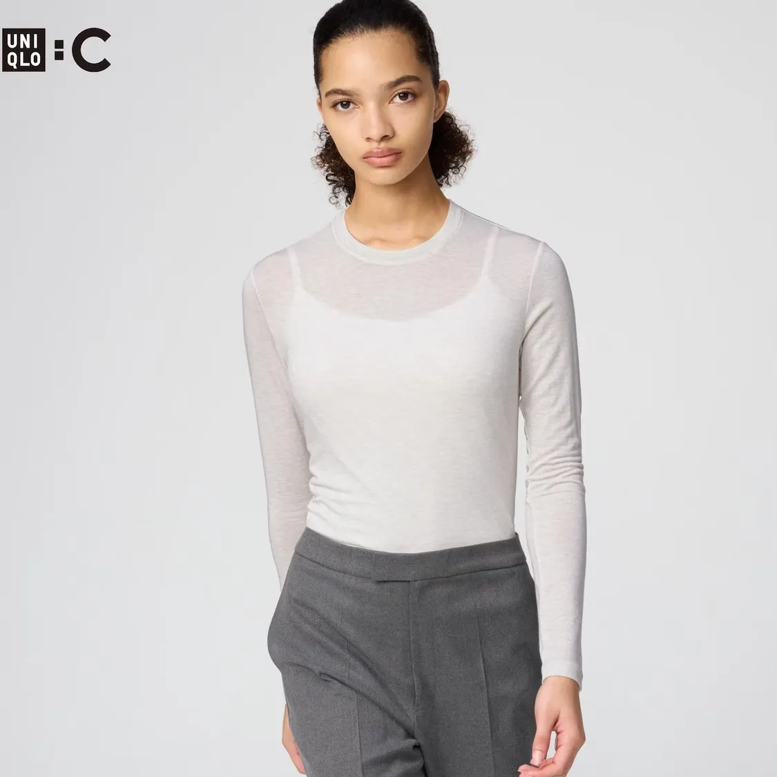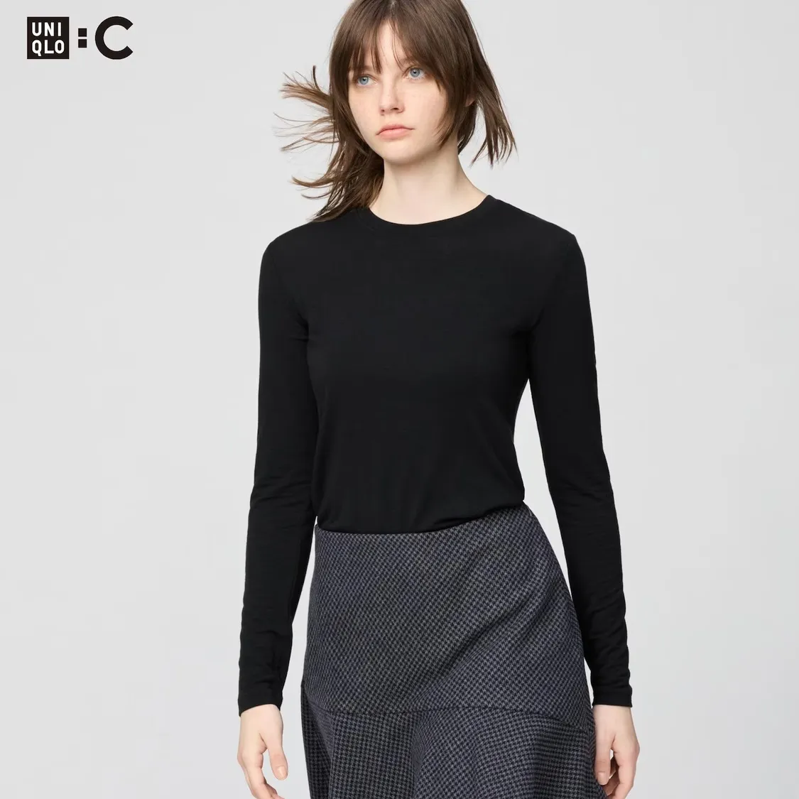 uniqlo HEATTECH 極暖 喀什米爾混紡圓領T恤(長袖)