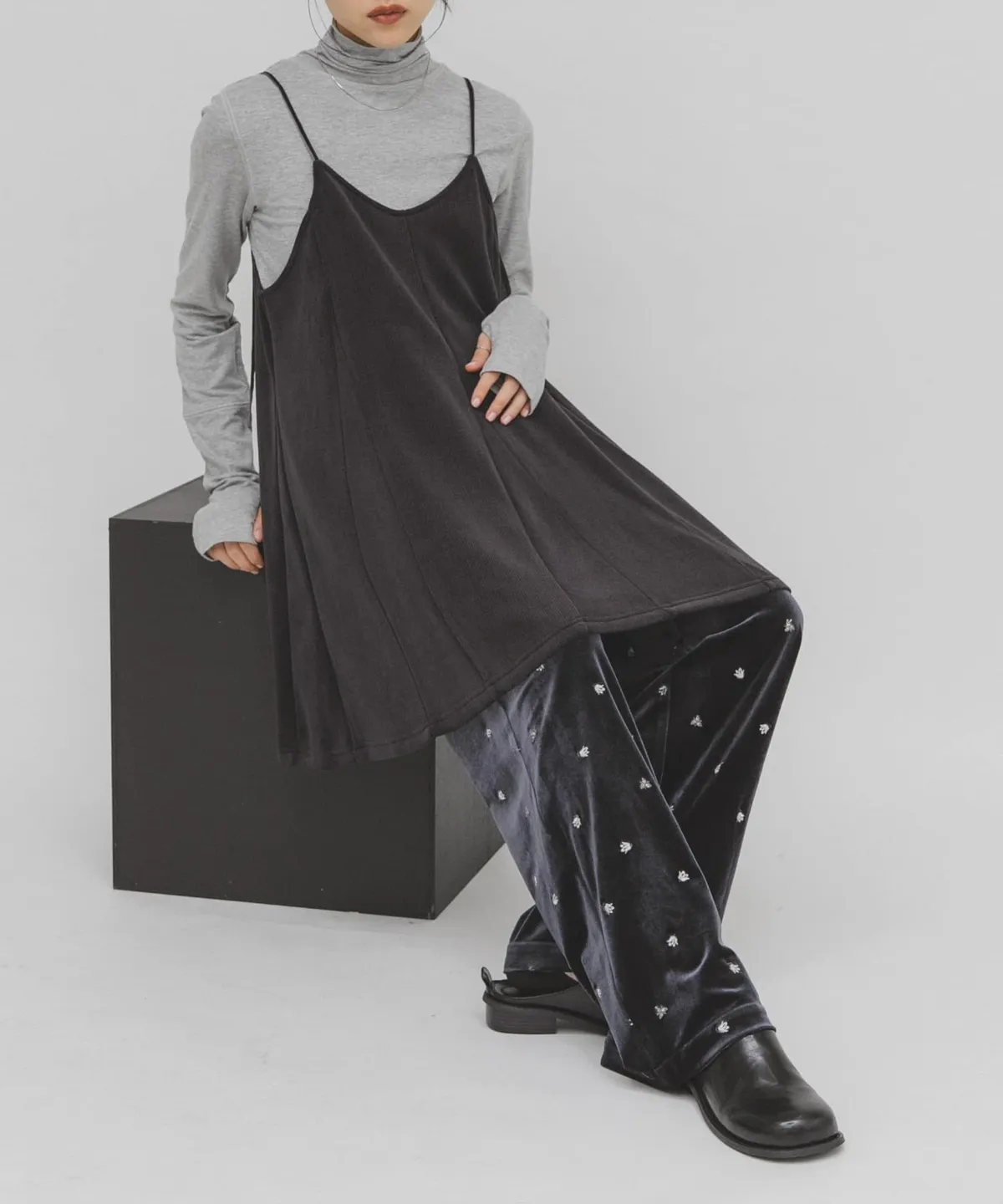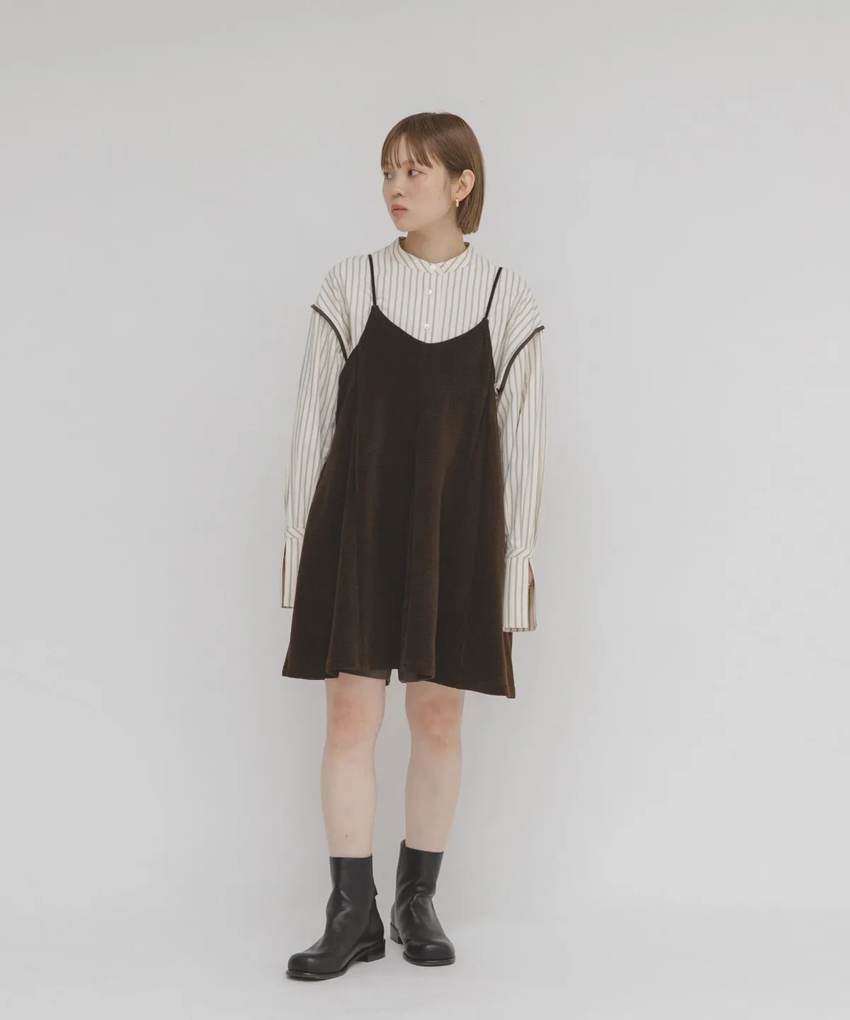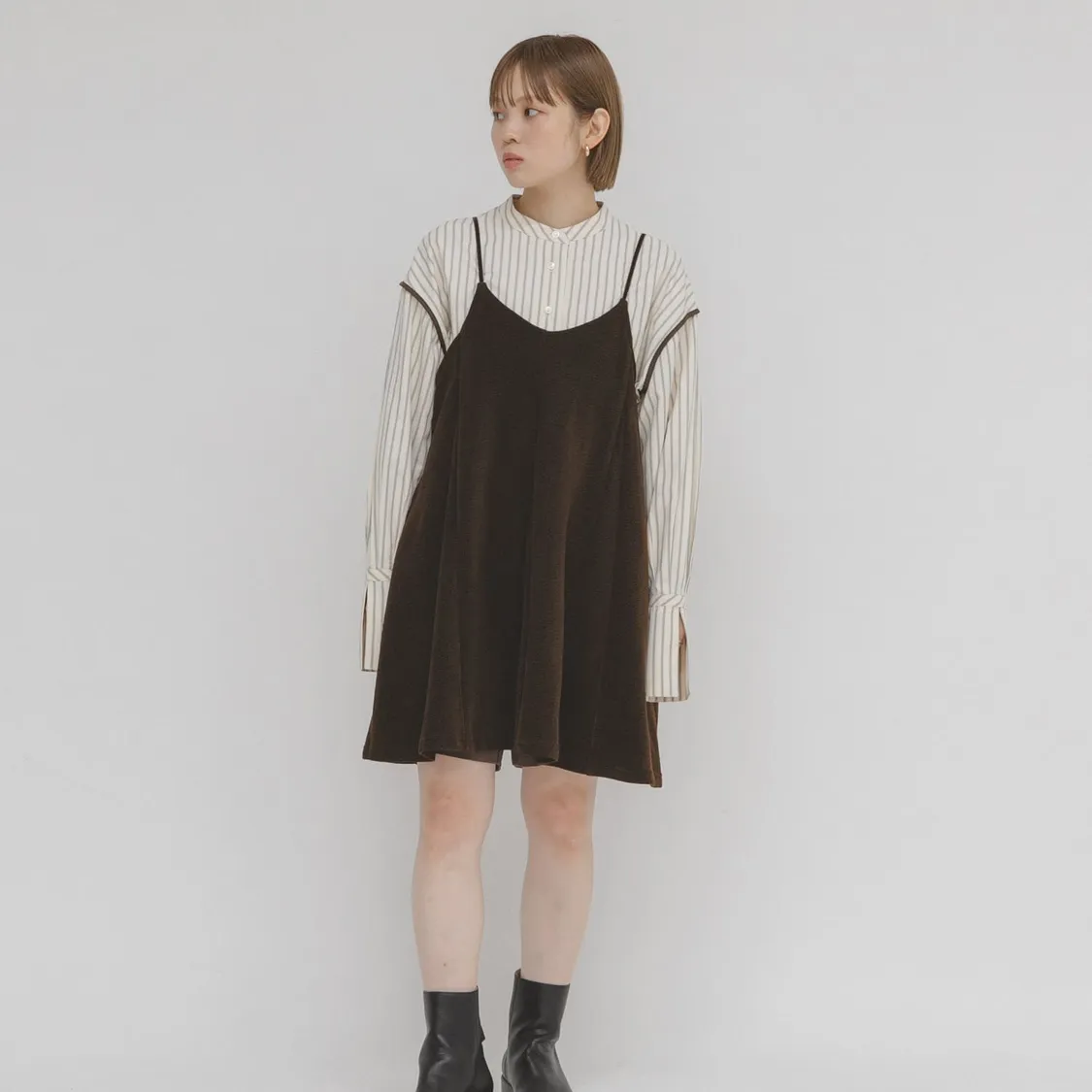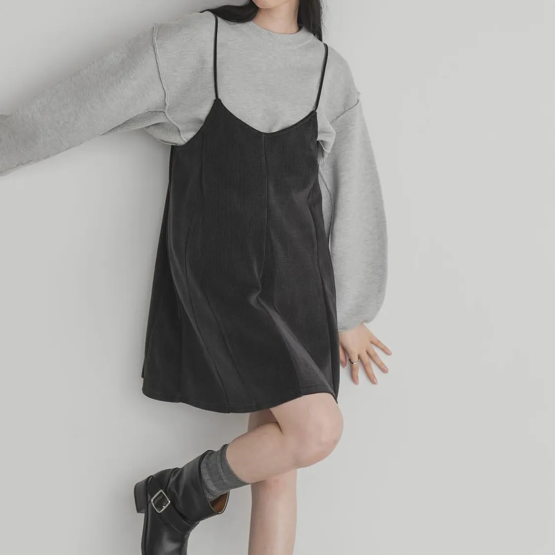 KBF U領絨感背心裙