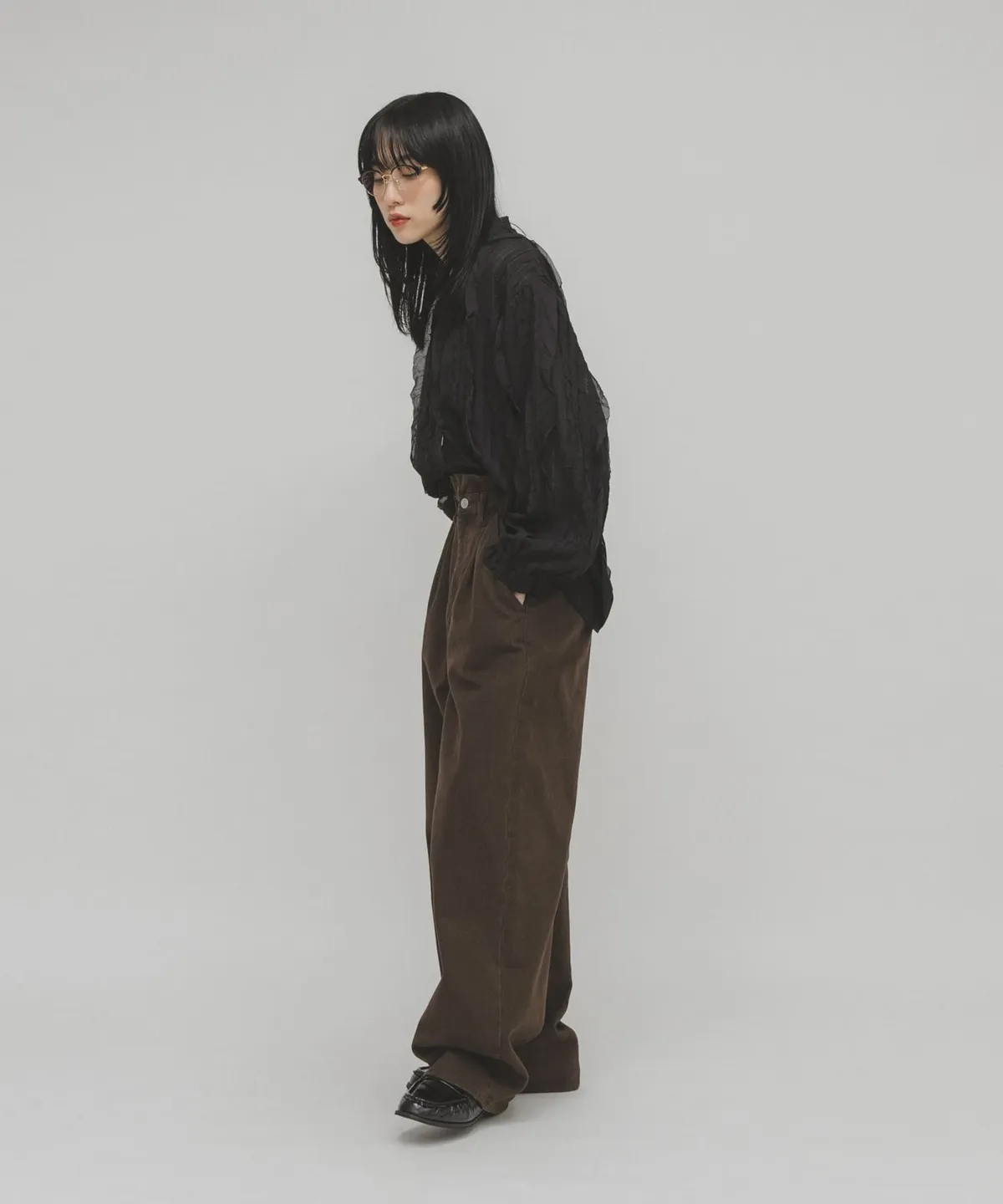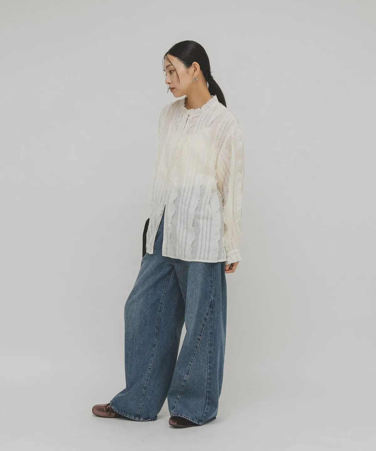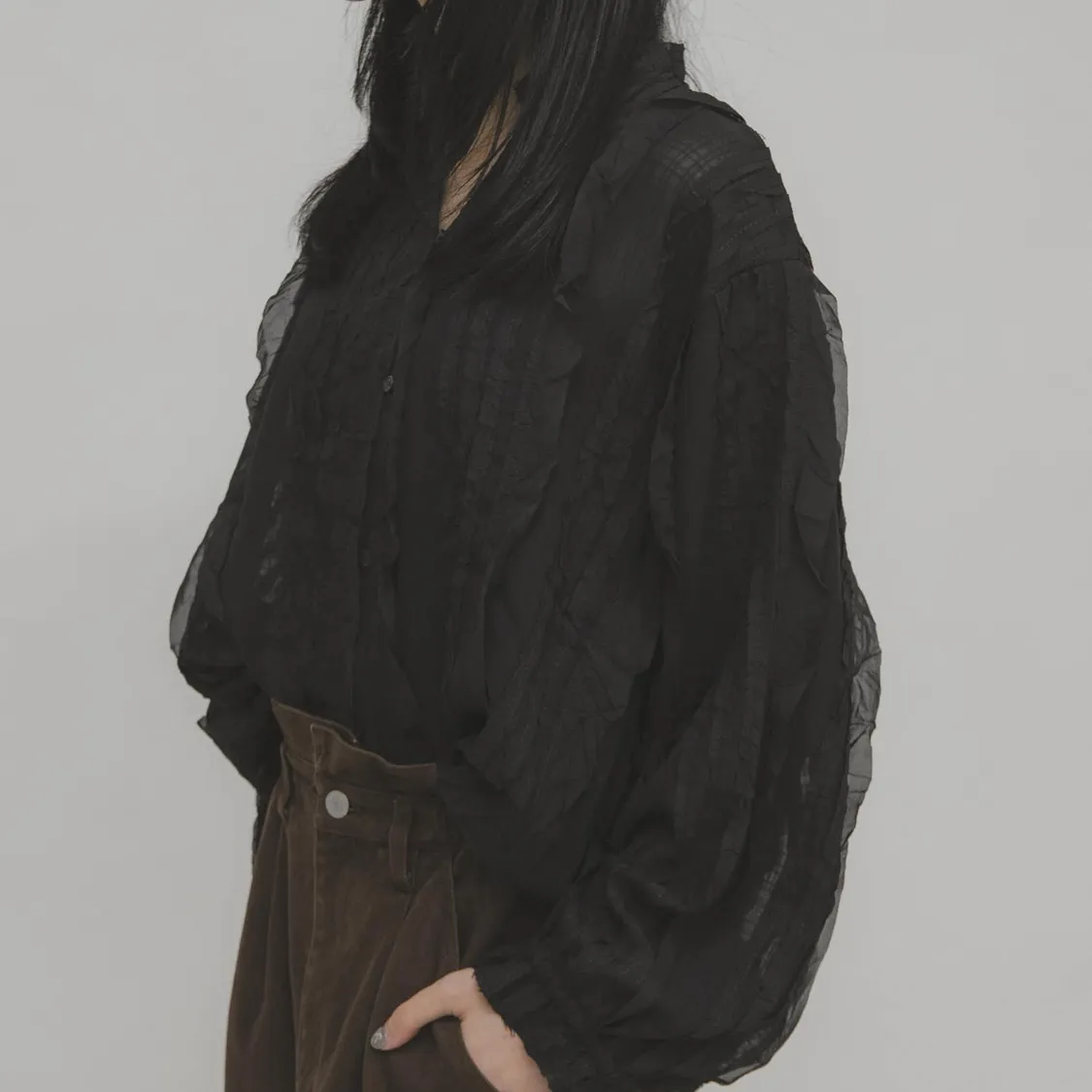 KBF 荷葉邊立體壓紋襯衫