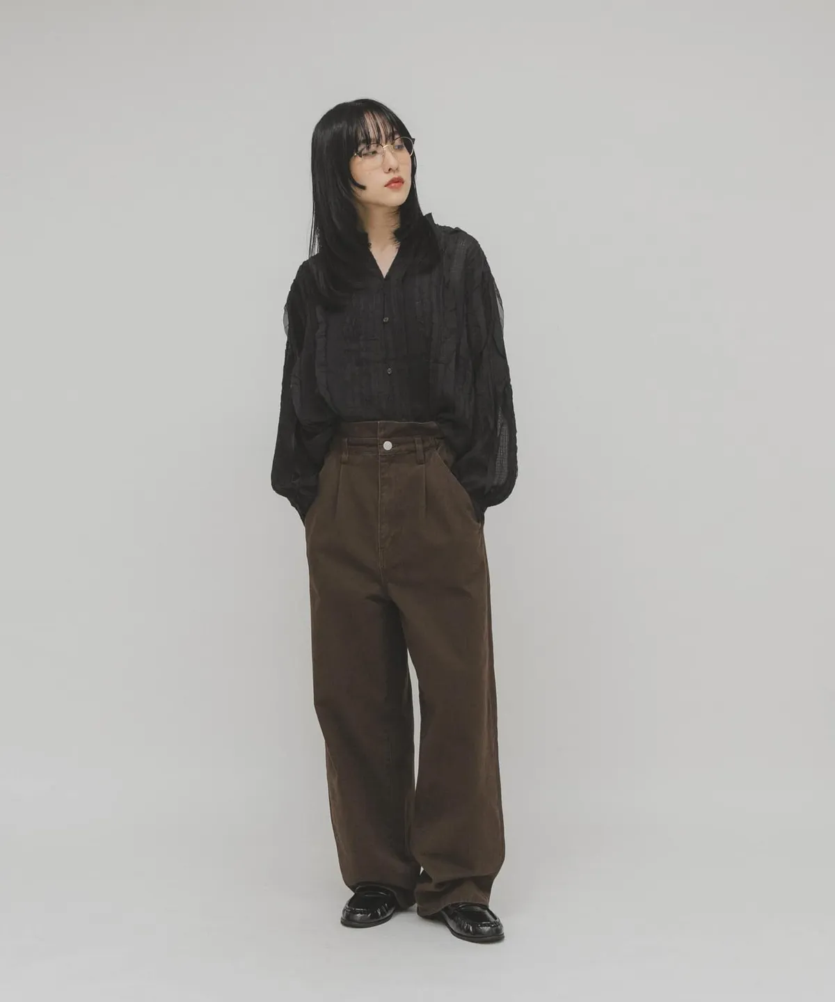 領口微微解開紐扣,營造出輕鬆隨意的氛圍