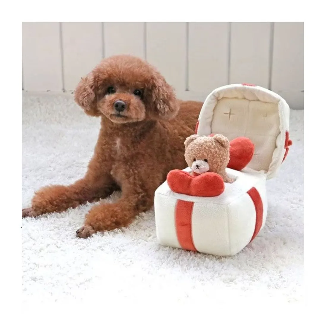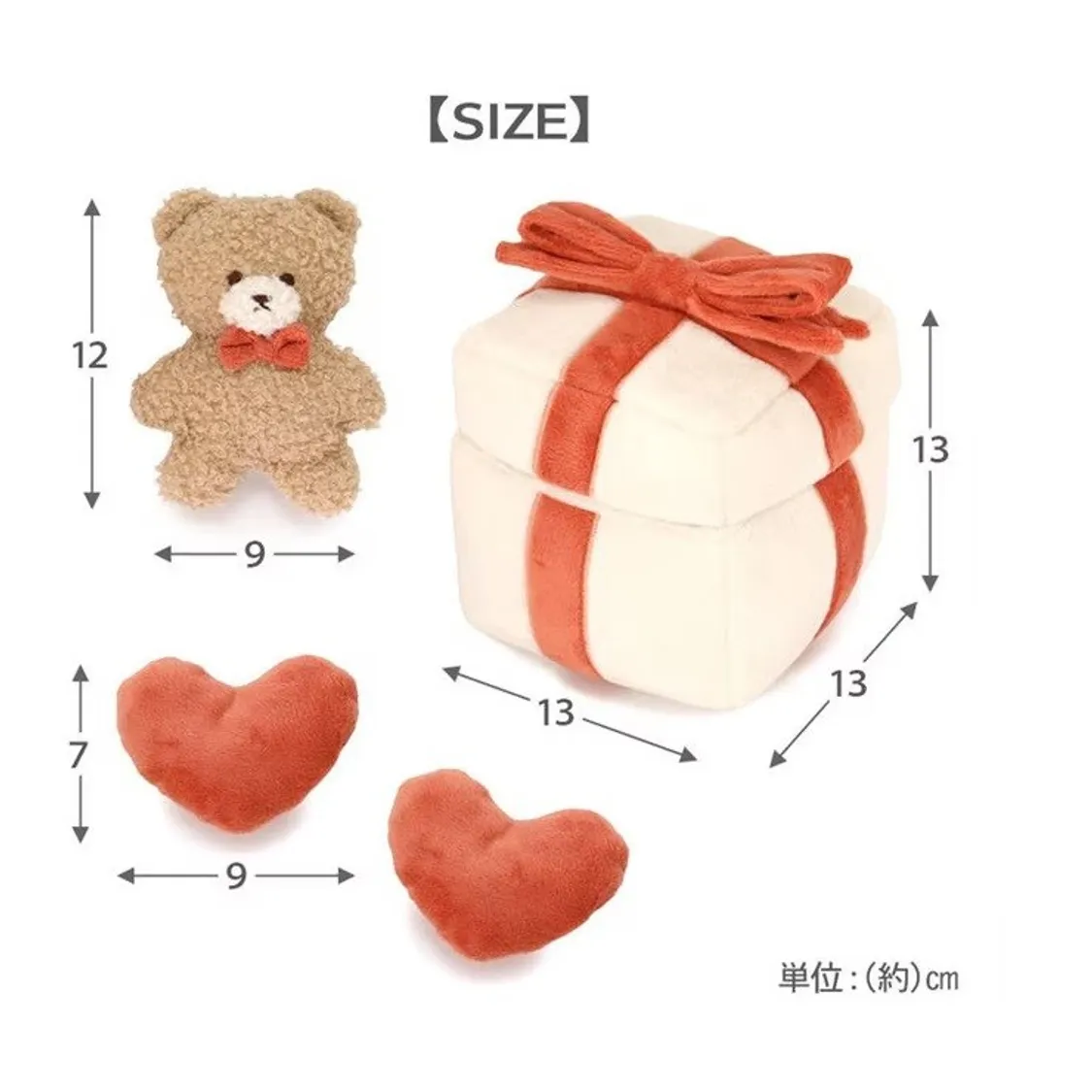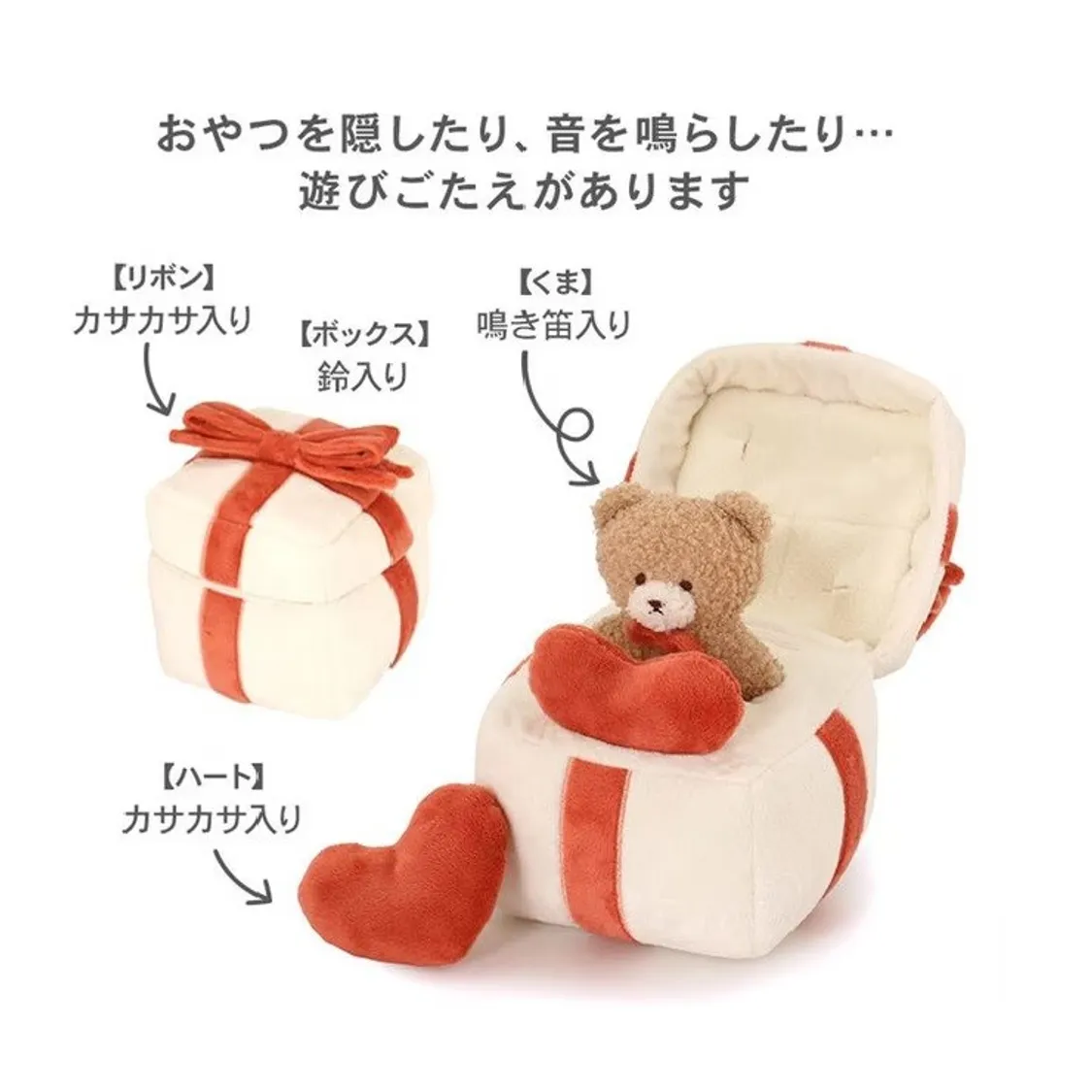 這款非常的可愛 禮物盒裡面附熊熊跟愛心 拿起來以後就可以藏食 玩具分開玩也沒問題 很適合送給毛孩當禮物 • 玩具無人看管可能會導致損壞或寵物誤食,因此請務必在寵物玩耍時進行監督 如果玩具損壞,請立即停止使用 • 請勿將此玩具給咬合力強的寵物 • 請仔細閱讀使用說明,以確保安全使用 材料:聚酯纖維 產地:中國
